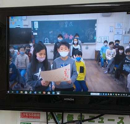 各学年から工夫を凝らした心のこもったメッセージが届けられ、6年生の教室では、メッセージが終わる毎に拍手が起こっていました。特に、卒業式に参列するはずだった5年生からは、今までの感謝の気持ちとともに、桜小のことは任せてくださいという気持ちが伝わってきました。少し目を潤ませる6年生もいましたよ。