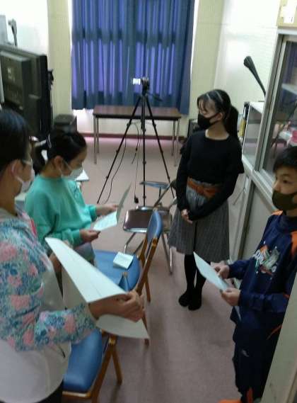 放送室では、企画運営をしてくれた運営委員の代表の人が、緊張した面持ちで放映前の最後の打ち合わせをしていました。卒業する6年生からしっかりとバトンを受け取りますという責任感にあふれているように感じました。