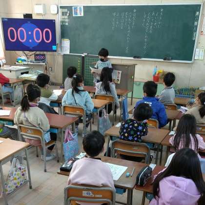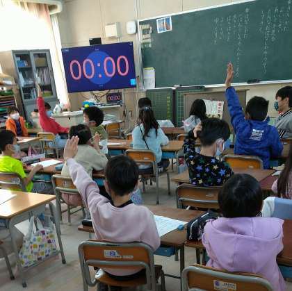 発表が終わると担任の先生から発表内容に関するクイズが出題されるのですが、みんなよく聞いていたのか一斉に手があがります。しっかりと答えていました。