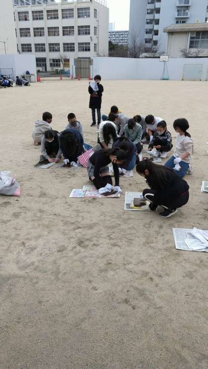 少し肌寒さを感じる校庭でしたが、一生懸命に磨いていました。