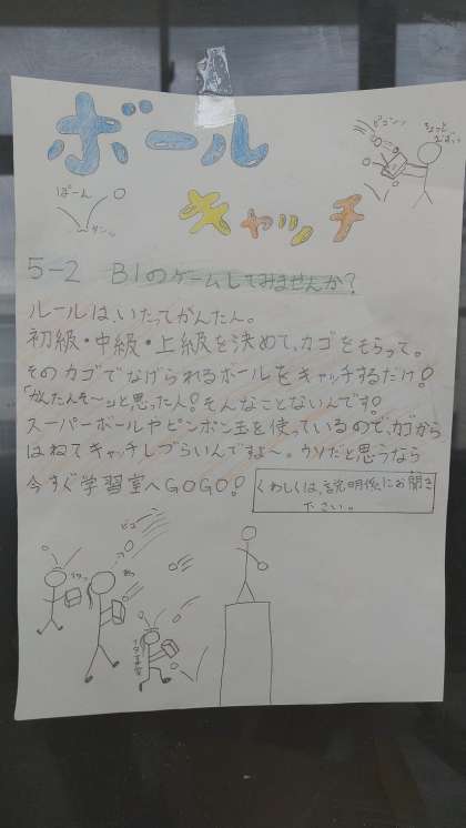 講堂でのレク以外に各教室に分かれてのゲームコーナーなどのお楽しみもあります。
