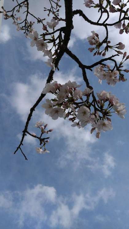 晴れ間に桜の花もちらほら咲きですがきれいです。