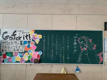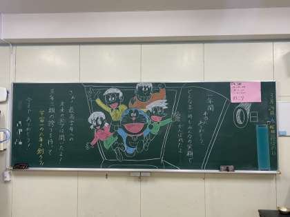 昨日(24日)の修了式を前にして、担任の先生方からの思いを込めた演出です。