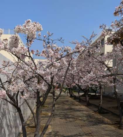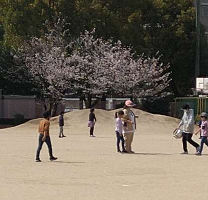 昨日の春の嵐一転、今朝は良い天気で、運動場に集まり元気にスポーツ活動を行っていました。4月中旬並みの暖かな日差しを浴びて校庭の桜も満開に近い状態になりました。