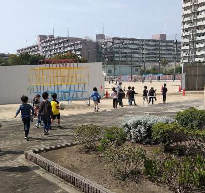今朝もたくさんの児童が、正門付近で8時30分の開始を心待ちにしていました。