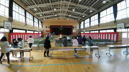明日の入学式の準備のために、新6年生のみなさんが登校しました。最高学年としての最初の仕事です。分担の説明があった後、担当場所に分かれて廊下清掃やトイレ清掃、講堂の会場設営等をてきぱきと行ってくれました。とても頼もしい6年生です。