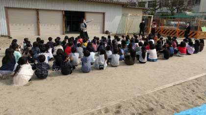 始業式の後、学年ごとに分かれて、新しい学級の発表です。