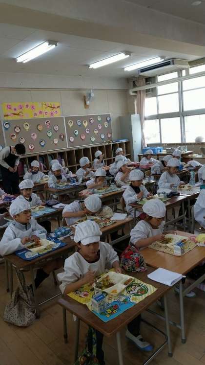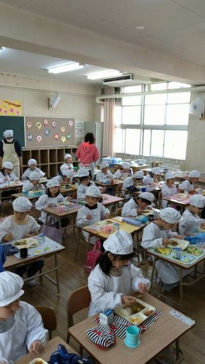 新型コロナウイルス感染症の感染防止のために、班で向かい合って楽しくおしゃべりをしながら食事をするということができません。全員静かに前を向いての喫食になります。