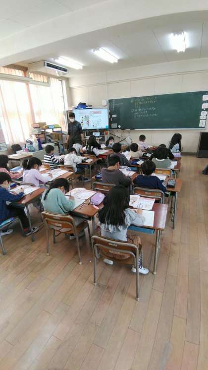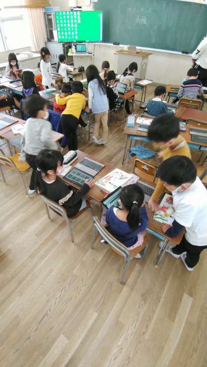 2年生の4時間目のようすです、タブレットのヤフーキッヅで調べ学習のための検索練習をしている学級もありました。