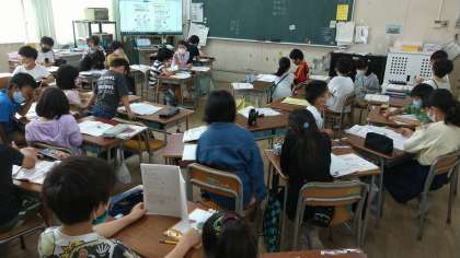 月曜日から2時間授業を行うことができるようになり、国語と算数の授業を中心に、しっかり進められるようになりました。音読の声もしっかりと、グループによる学び合いも楽しそうです。明日と明後日は、午前中4時間授業が可能になり、来週月曜日からは通常授業に戻ります。