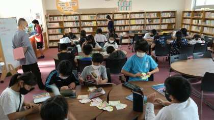 グループに分かれ意見を出し合ったり、ポップ(紹介カード)を作成したり……