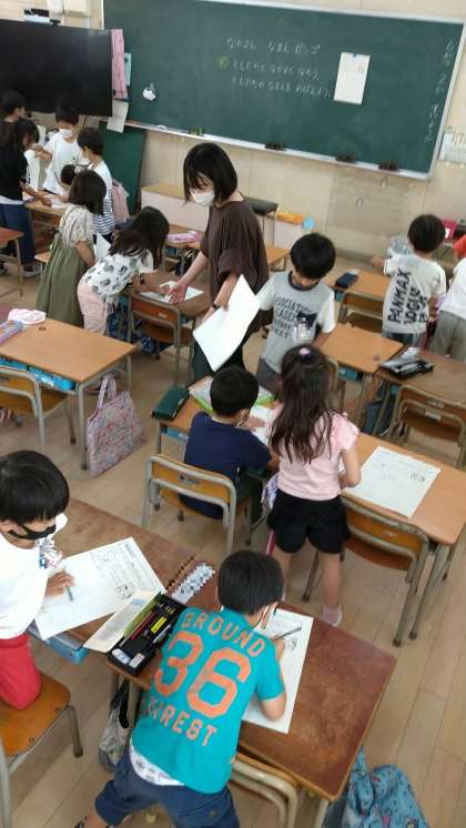 ビンゴゲームのマス目が完成したら、いよいよゲーム開始です。担任の先生が名前を読み上げていきますから、出た名前がマス目にあれば丸で囲みます。たて・よこ・ななめ…誰が一番早くそろうかな?