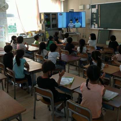 1年の教室をのぞくと、みんなクイズやジャンケンゲームなど画面越しにですが楽しんでいました。