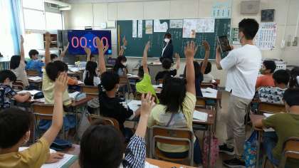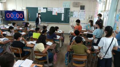 教材『世界でいちばんやかましい音』を学習し始めてからの第2時間目。今日は、全員が発表する機会がありました。大阪市教育センターの学力向上推進指導員の先生には、授業風景をオンラインライブ映像で参観いただいたところ、「熱心に取り組んでいますね。」と、子どもたちの学習姿勢を高く評価してくださいました。