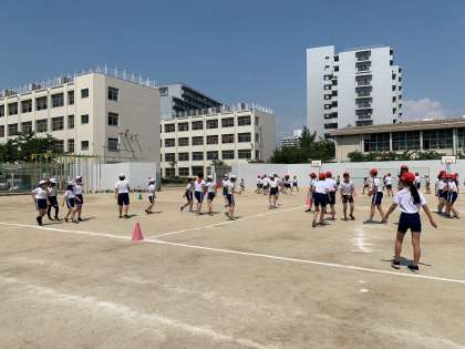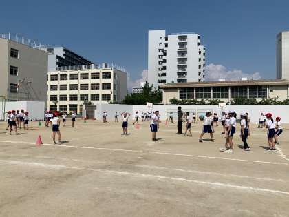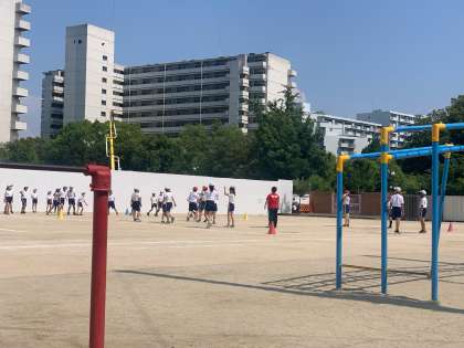夏が近づき、暑さが増す午後の運動場!