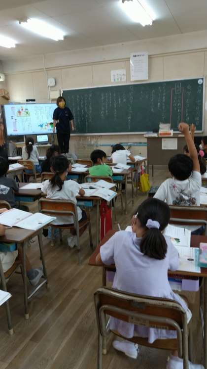 黒板に書かれた友だちの発言を見て、自分の意見をしっかり伝えます。