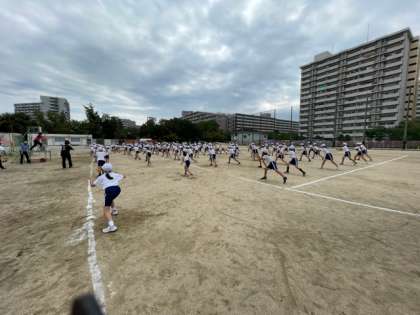 運動会の練習が始まりました。一人一人がめあてをもって「ソーラン節」の練習に励んでいます。力強く素早い動きが連続で続くので、みんな真剣な表情で練習していました。