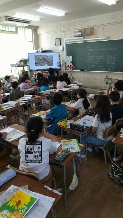 草むらのムシたちをデジタル教科書の資料で確認していました。
