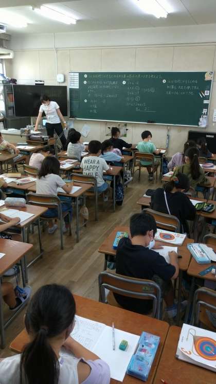 あまりの出るわり算。ひとり当たりの個数を求めます。