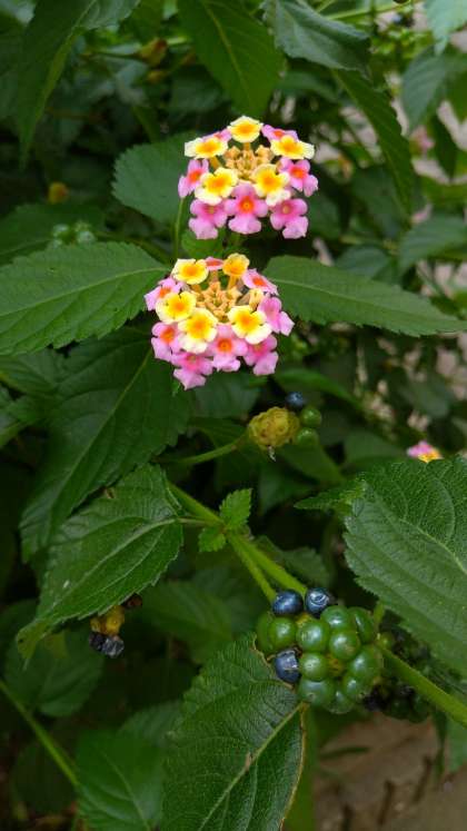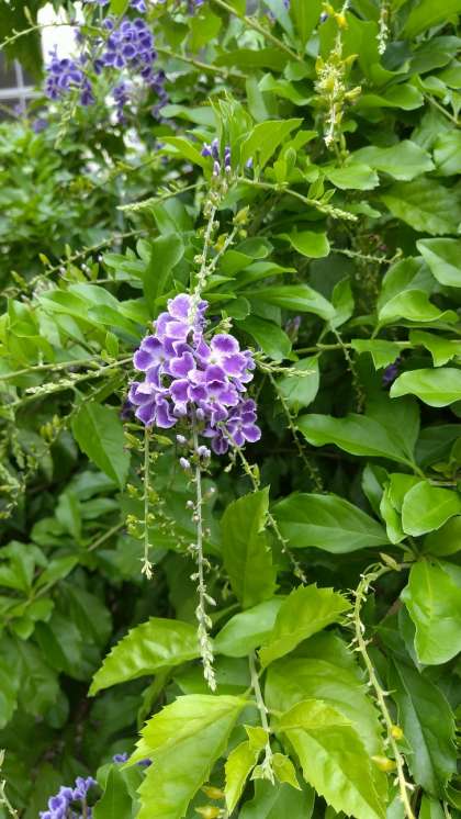 みなさんも 中庭のどこに咲いているか見つけてくださいね。タブレットを用いて名前を調べましょう。3枚の写真の花のうち「七変化」という呼び方もあるのはどれだと思いますか。しっかり観察をすると気づきますよ。
