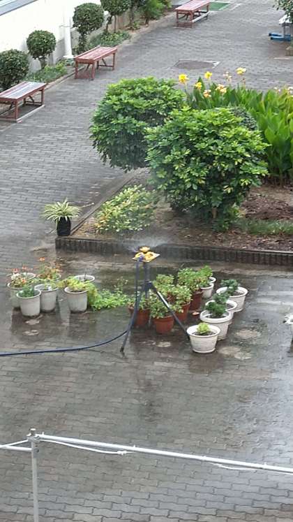 今朝の散水機は、いつもとは別の場所で作動していました。