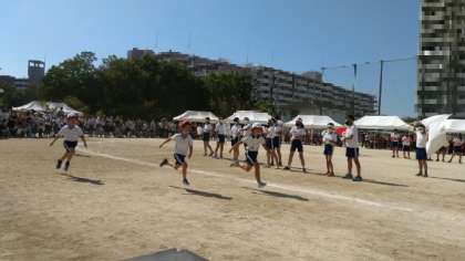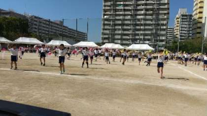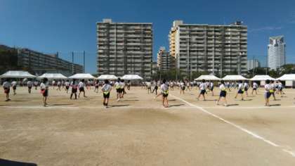 団体演技「メラ・メラ・Mela!」緑黄色社会とGReeeeNの元気な曲にのって魅せます。カラー軍手が青空に映えました。