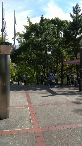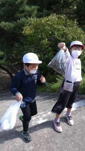 松かさやどんぐりを集めました。おにごっこも楽しかった。草むらの引っ付き虫がすごかったね。