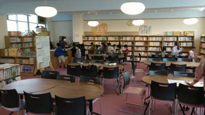 図書活動の学級では、読んだ本の返却をしているところでした。きょうは、学校図書館補助員さんも来てくださっていました。