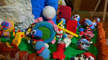 昨日(10日)まで大阪市立総合生涯学習センター(大阪駅前第2ビル)のギャラリーで作品展が開催されていて、本校児童の共同作品も展示されていました。