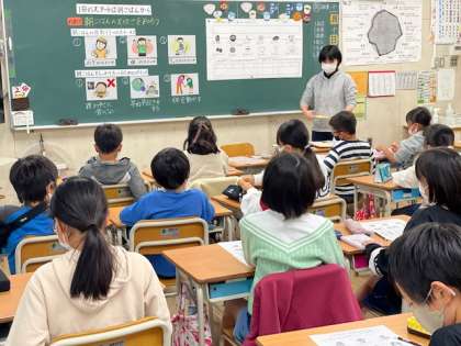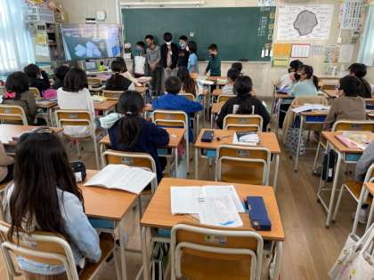 係活動では、学級を盛り上げるために、クイズをしたりお笑いをしたりしています。毎週アンケートをとる係もあり、学級の〇〇ランキングを調べて発表しています。