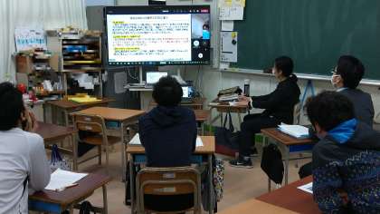 今里小学校は長崎県と鹿児島県にある同名の今里小学校と連携して遠隔合同授業を行っていて、今日の研究発表会には両県の今里小学校も参加しました。