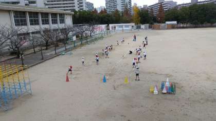 今朝は運動場に太陽の光が差し込まず寒々しいなかでしたが、子どもたちは寒さに負けずボールのパス練習を元気にしていました。子どもは風の子とはうまくいったものですね。