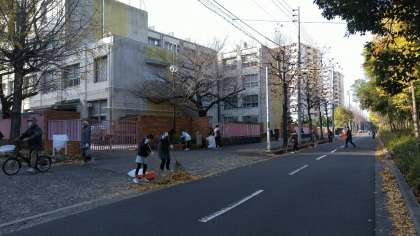 例年、地域をお借りしての「走れ走れ大会(児童マラソン大会)」前に、競技中の事故防止を目的のひとつに行ってくださいます。本年度の大会は2月に開催予定ですが、登下校時の安全確保につながると、落葉時期に清掃してくださいました。