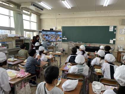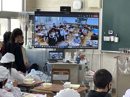 南港桜小学校の3年3組の児童と今里小学校の3年1組の児童が一緒に買い物について調べ活動をしています。