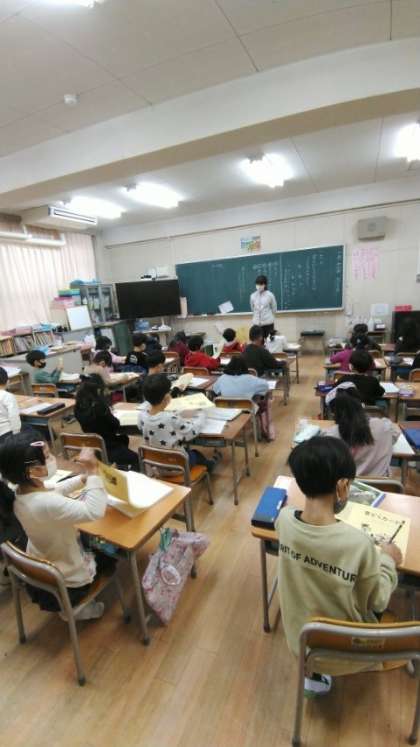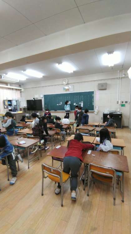 教室では、新しい係決めや音読カードの確認などをしていました。
