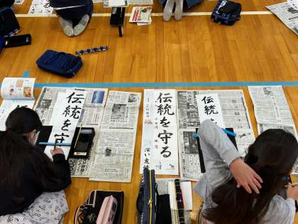 今日は、講堂で書き初めを行いました!