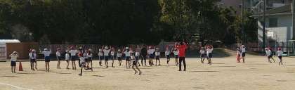 住之江区の事業委託により、スポーツを通した「青少年の健全育成」と「体力向上」を目指した取組として、大阪ガスが主催し、オリンピアン朝原宣治氏が主宰する「地域に根差した運動・陸上クラブ」である「NOBY T&F CLUB」の運動プログラムに基づいた走り方教室も今回が最後です。ウオーミングアップも前回までのことをすぐに思い出しておてのもの。