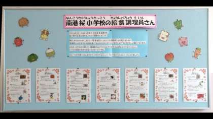 学校給食週間にあわせ、本校では1月24日から28日までを給食週間として食育の取り組みをしました。給食の歴史について考えたり、食べ物や給食にかかわる全ての人に感謝したりしてすごしました。