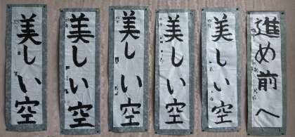書初めでしょうか、階段踊り場掲示板に飾られていました。