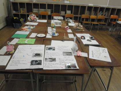 3年生では、学習室に自由研究を並べて、互いの作品を見合っていました。とてもがんばった作品ばかりでした。