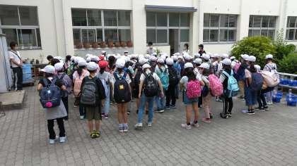 実行委員の司会で帰校後の振り返りと付き添ってくださった応援の先生にお礼をいいます。