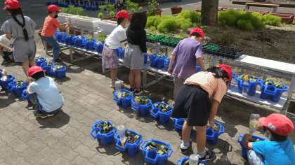 朝一番に、ペットボトルに水を汲んで、いとおしいそうに水やりです。