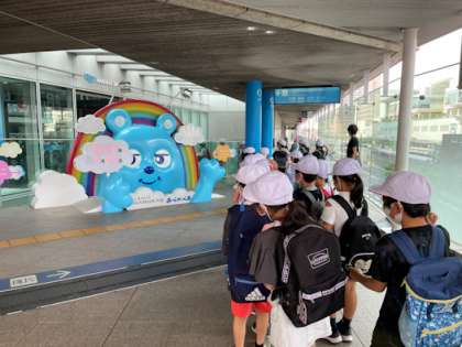 きょうの午前中、大阪市の様子について学んでいる社会科の学習のために、あべのハルカスへ行きました。先週の遠足と同様に電車内での過ごし方マナーをしっかり守り、無事、天王寺駅に到着。