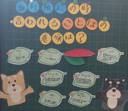 保健室前に掲示していますが、もう見てくれたかな。明日から歯科検診がはじまりますが、その時に言われることばの意味です。意味がわかると、自分の歯と口の健康がどうなのかが、すぐにわかりますね。