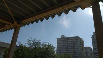 昨年度子どもたちの熱中症対策にとNSOのご厚意で新調してくださったミストシャワーを今年も管理作業員さんが設置、水が霧吹き状に優しく吹き出ています。