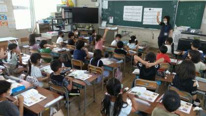 3年生では、週に一度、学年内専科授業を行っています。現在は、「総合的な学習の時間」「音楽科」「図画工作科」を、それぞれ一人の教員が担当し、3クラスを指導します。