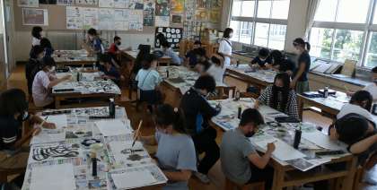 雪舟は、小僧の頃、涙でネズミの絵を描いたという逸話がありますが、現代の子どもたちは少々悪戦苦闘しているようです。