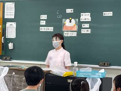 学校歯科医の先生と歯科衛生士のみなさによる口腔衛生指導を行っていただきました。