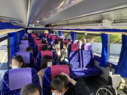 バスのなかも元気です。