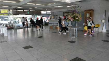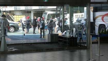 バスにな乗り込みます。お世話になった鳥羽グランドホテルともお別れです。